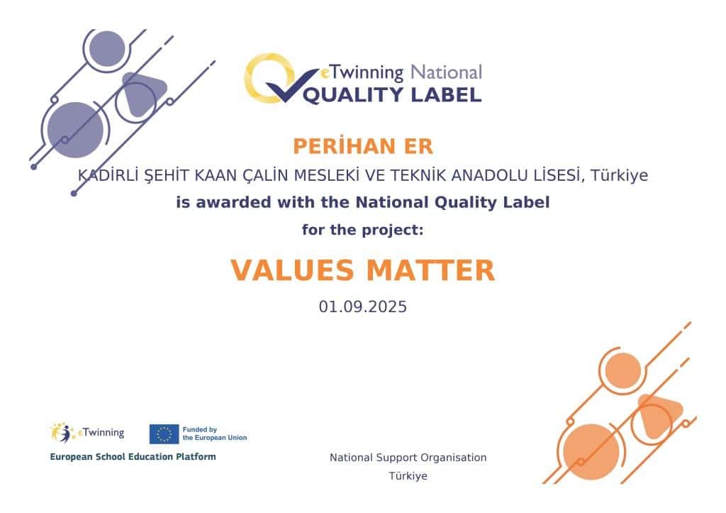 *Perihan ER ise “Values Matter” projesiyle kalite etiketi kazanmıştır.